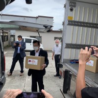 当日は松浦ガバナー始め、設楽第一副地区ガバナー、美田第二副地区ガバナー、キャビネット役員が集合して運搬・配送・納品に参加しました。松浦ガバナーは率先して黙々と段ボールを運びながら大粒の汗を流していました。多分翌日は筋肉痛になっていたことでしょう。